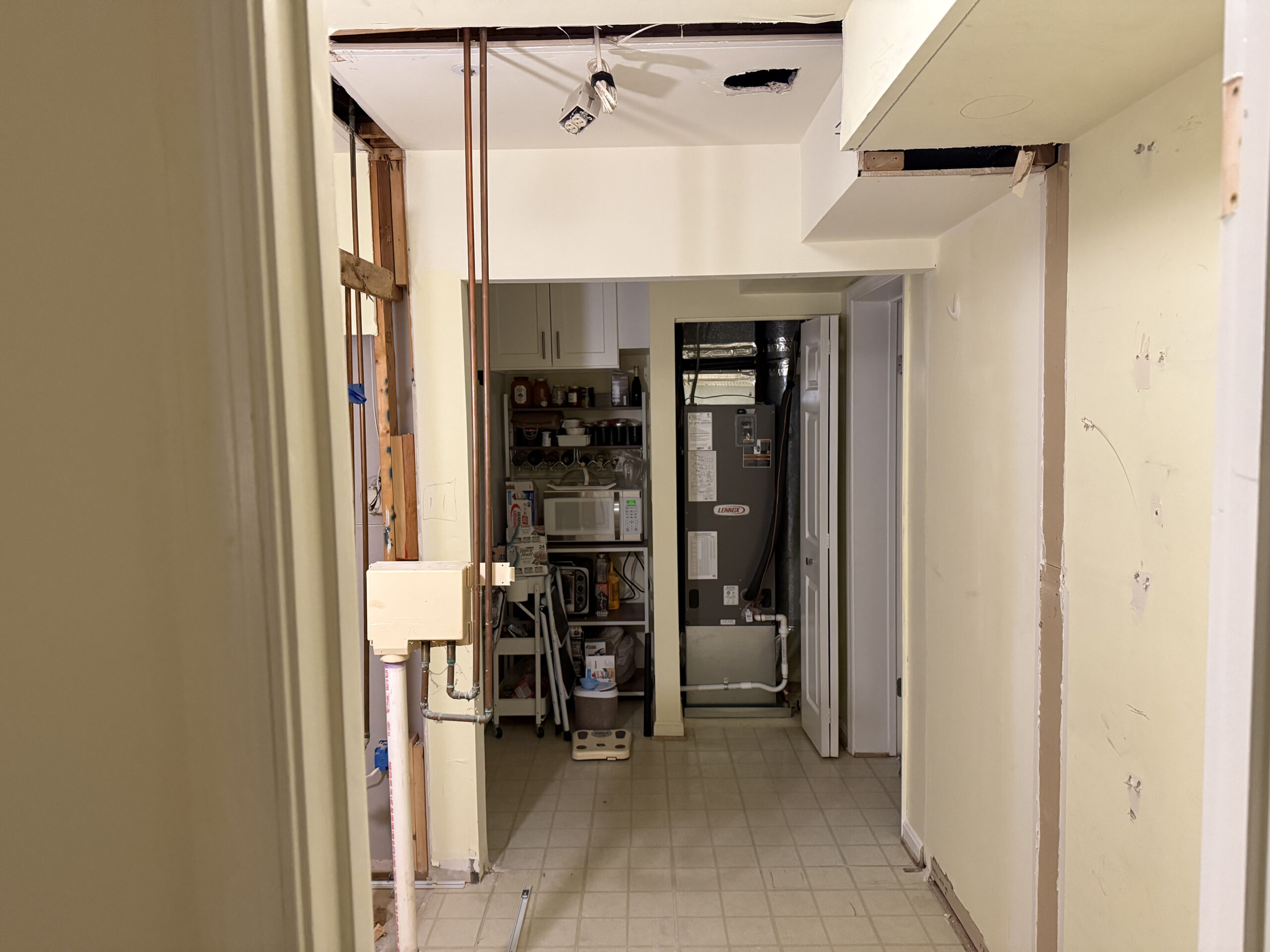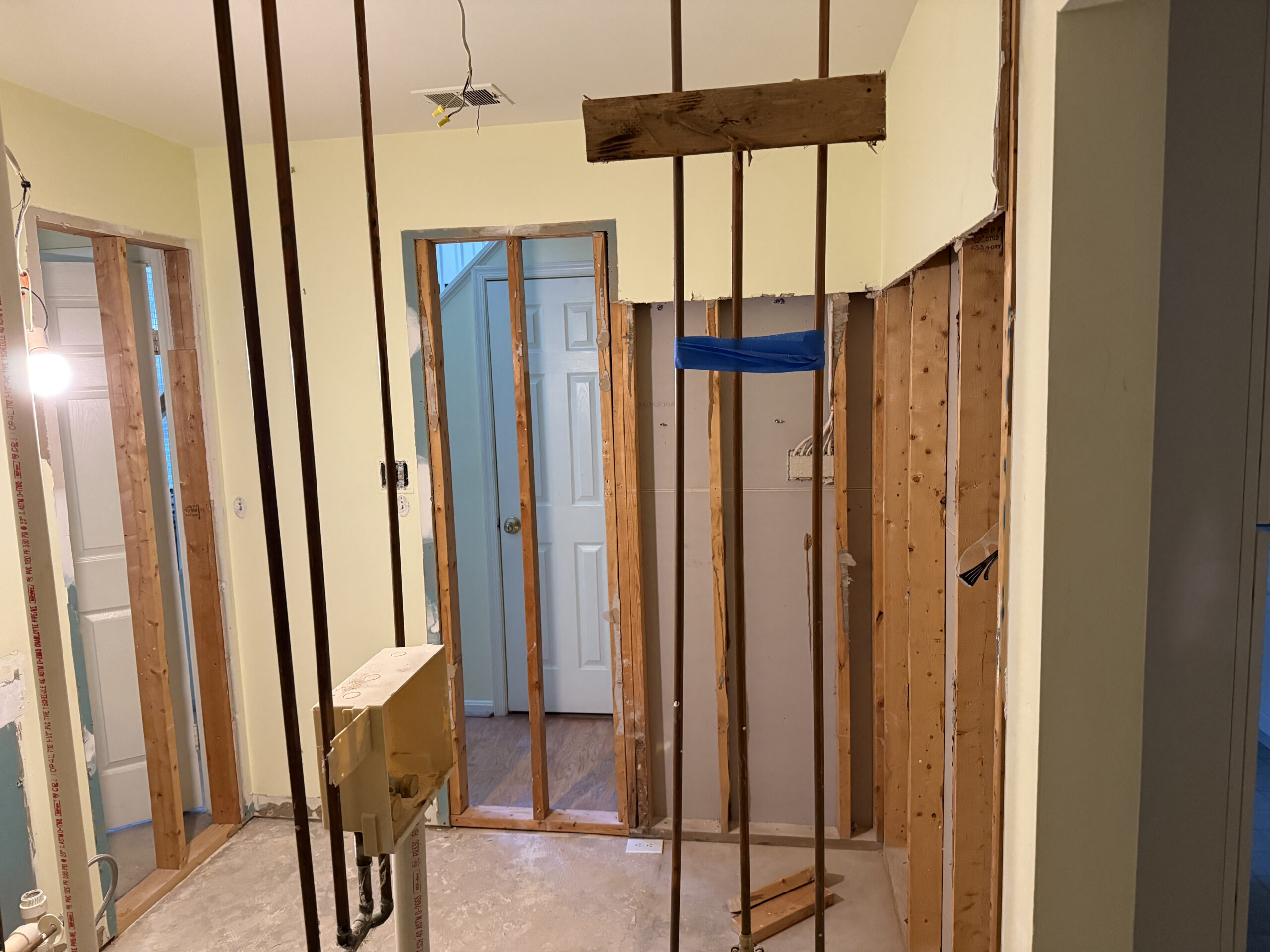 | Step 1 – Framing work in progress in the basement | Step 2 – Drywall work in progress in the basement |
